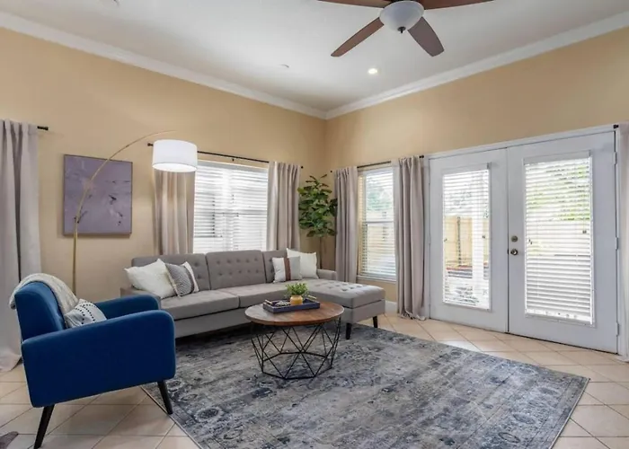 De 2-slaapkamer Large 3 Bedroom With King Bed Orlando villa bevindt zich op minder dan 5 minuten lopen van Princeton Park en biedt gemakkelijk toegang tot attracties in de omgeving.